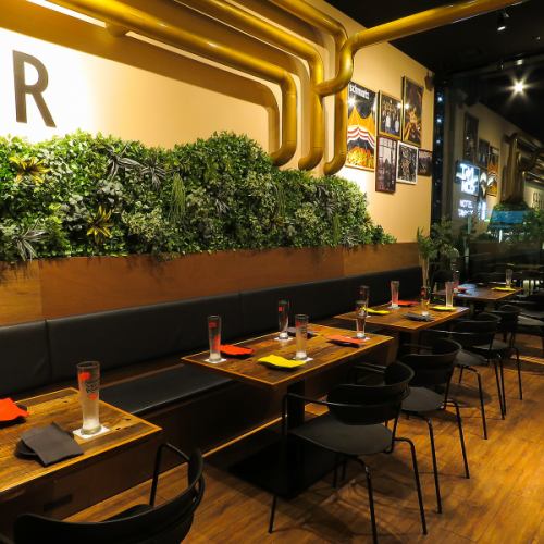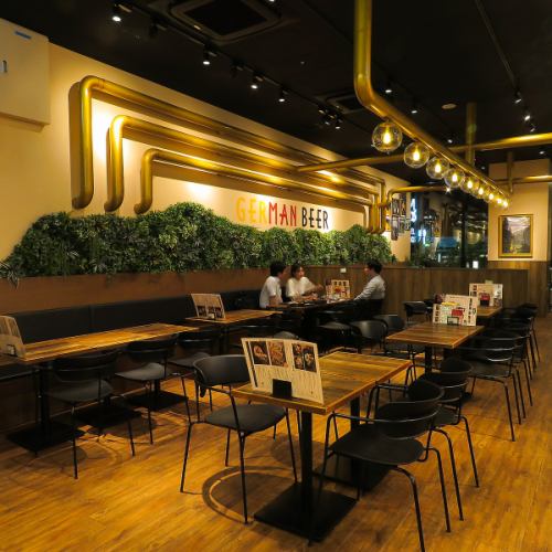 現地のビアバーに来たような気分を味わえるお洒落で開放感のある店内。少人数から大人数のご利用まで様々なシーンでご利用いただけるテーブル席。宴会・女子会・誕生日会・合コン・パーティなど様々なシーンでご利用ください。